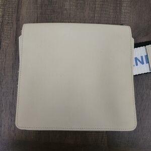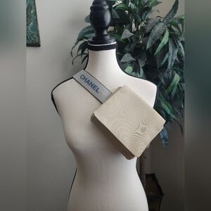 Chanel 1990'S Vintage Beige Nylon Logo Strap CC Buckle Square Flap Waist Bag