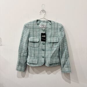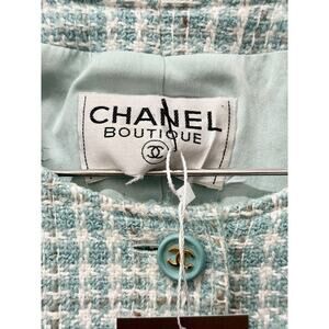 Chanel 1997 CC Button Single-Breasted Tweed Uniform Jacket Green Women's Size XS
