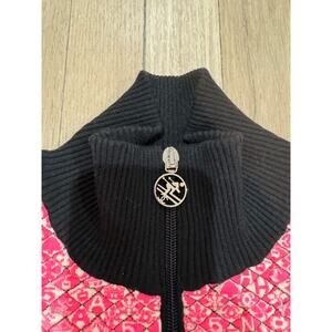Chanel 19B Coco Neige Ski Pink Quilted Black Logo Wool Cardigan Zip Up Jacket 38