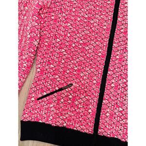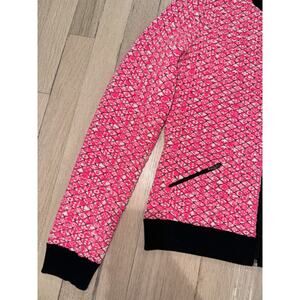 Size: 38 (know your Chanel size) Name: Coco Neige Ski Color: Bright Pink, Ecru & Black Season: 19B Style: Cardigan