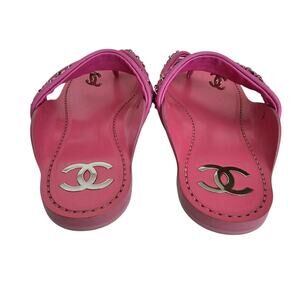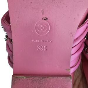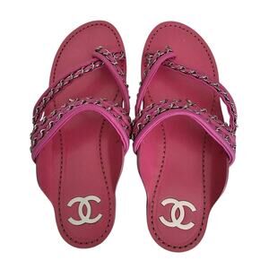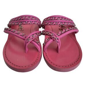 Chanel 19C CC Charm Chain Thong Flat Sandals – Pink Leather, Size 39C (US 8–8.5)