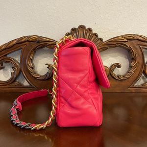 Chanel 19 Flap Large Neon Pink Chain Bag Handbag Shoulder CC Quilted