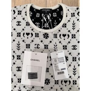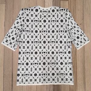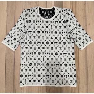 Chanel 19K Coco Neige Black White Wool CC Logo Top Short Sleeve Tee T Shirt 40
