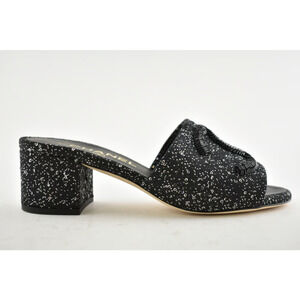 Chanel 19P Black White Fabric CC Logo Backless Slide Mule Sandal Block Heel 35