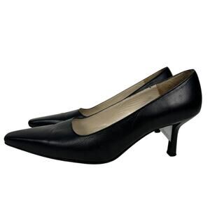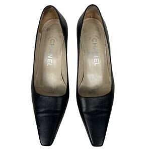 Chanel 2002 Black Lambskin Leather Logo Square Toe Kitten Heel 6