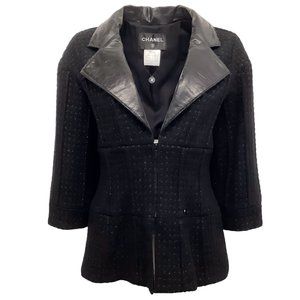 Chanel 2014 Supermarket Collection Black Boucle Jacket with Leather Collar