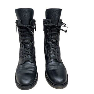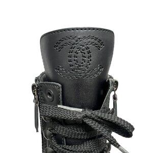 Chanel 2014-2015 Interlocking CC Logo Leather Combat Boots Women's sz 38/7.5