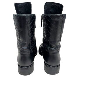 Chanel leather mid calf combat boots