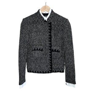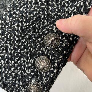 Chanel 2017 Black White Tweed Wool Blend Lion CC Button Jacket 38