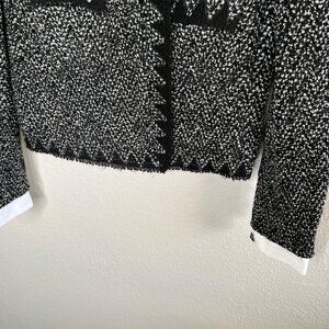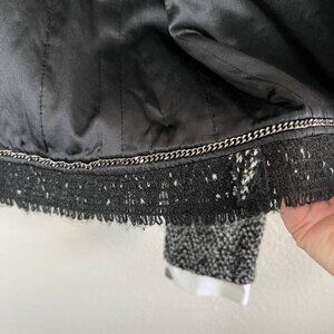 Excellent preloved condition Chanel 2017 Black White Tweed Wool Blend Lion CC Button Jacket 38