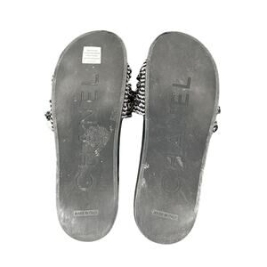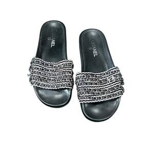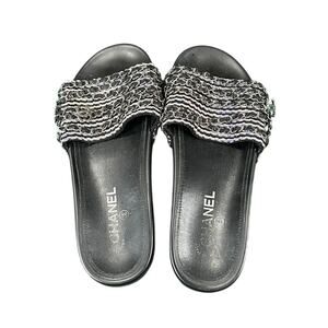 Chanel 2017 Interlocking CC Tweed Slides Chain Logo Sandals 41