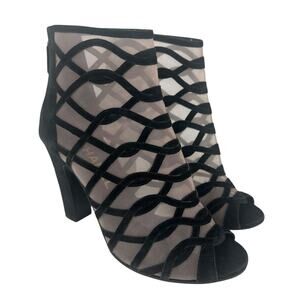Chanel 2018 Black Suede Mesh Peep Toe CC Logo Ankle Boots