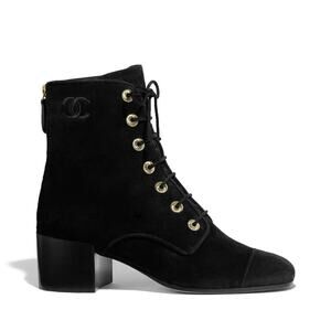 Chanel 2019 Interlocking CC Logo Suede Lace-Up Ankle Boots Black Size 39