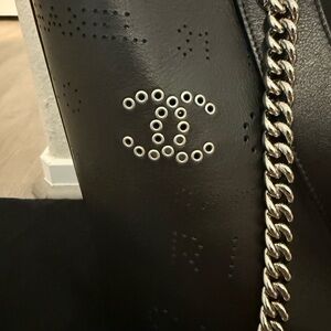 Chanel 2019 Perforated Black Leather Tote with Chain Straps