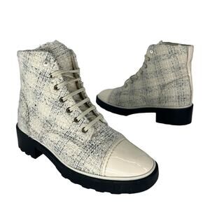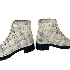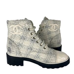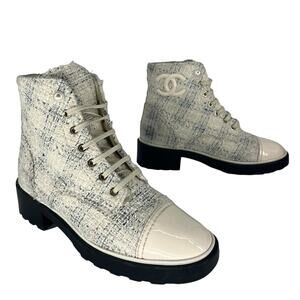 Chanel 2019 Tweed Interlocking CC Logo Cap Toe Combat Boots