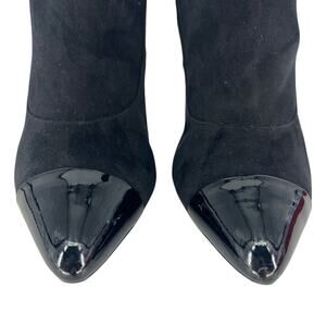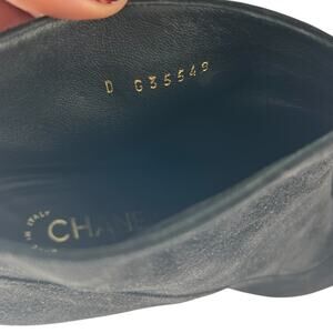 Chanel 2020 CC Suede Pearl Heel Cap Toe Logo Boots Black