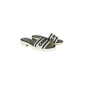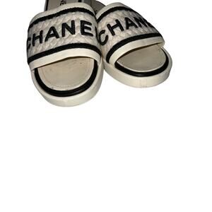 Chanel 2021 Interlocking Cream Leather CC Logo Slides Size 9
