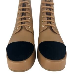 Chanel 2022 Interlocking CC Logo Cap Toe Lace-Up Platform Boots Size 39.5