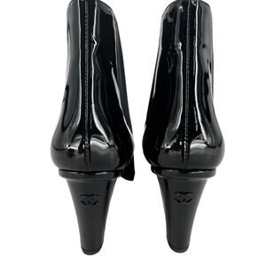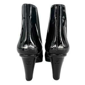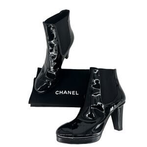 From Chanel’s Cruise 2022 Collection by Virginie Viard, these sleek patent leather Chelsea boots feature a modern silhouette with timeless house details. Crafted in glossy black patent leather with classic round toes and elastic gore side panels for easy slip-on styling, they’re finished with the signature interlocking CC logo at the back for an unmistakable touch of luxury. A sturdy block heel adds lift while maintaining comfort, and sole grips have been professionally added for traction and durability. A collector-worthy addition to any Chanel wardrobe.
