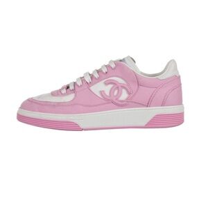 Chanel 2024 Interlocking CC Logo Sneakers pink white 38