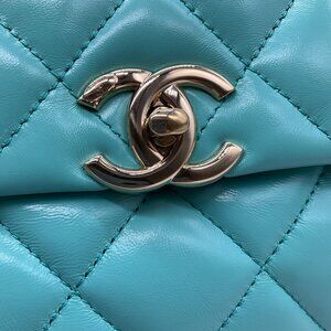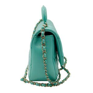 Chanel 2024 Turquoise / Gold Hardware Quilted Lambskin Leather Coco Trip Top Handle Flap Bag
