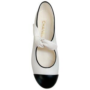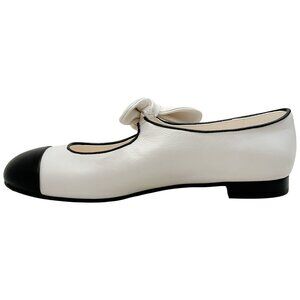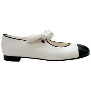 Chanel 2025 White / Black Cap Toe Mary Jane Flats