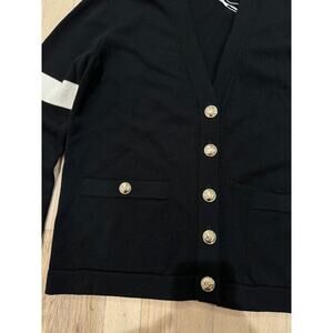 Chanel 20K Black Cashmere White Gold CC Logo Long Sleeve Cardigan Sweater 38