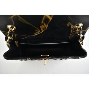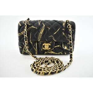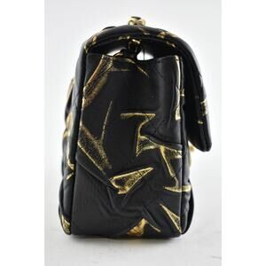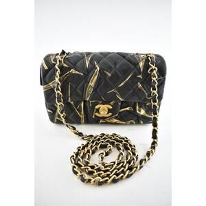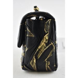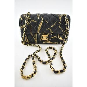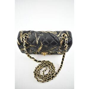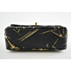 Chanel 21A Black Gold Painted Mini Flap Rectangle CC Quilted Chain Crossbody Bag