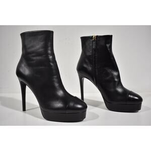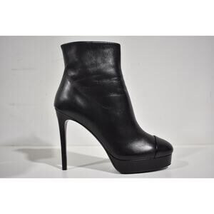Chanel 21A Black Lambskin Leather CC Logo Platform Ankle Short Heel Boots 41