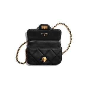 Chanel 21A Black Mini Flap Card Holder With Chain Handle Shoulder Crossbody Bag