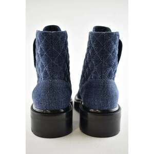 Chanel 21A Blue Black Quilted CC Chain Combat Lace Up Tie Ankle Short Boots 40