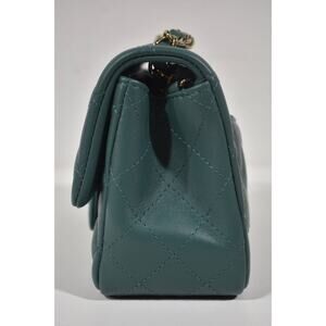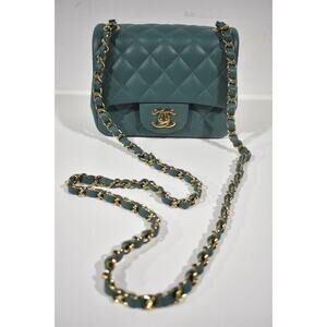 Chanel 21A Green Square Mini Flap CC Logo Quilted Gold Chain Crossbody Bag