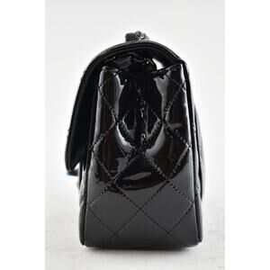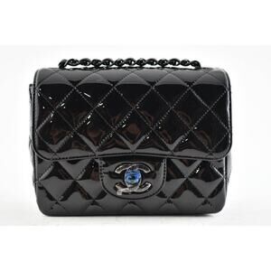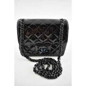Chanel 21B So Black Patent Flap Mini Square CC Logo Quilted Chain Crossbody Bag