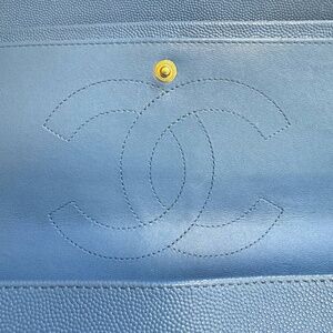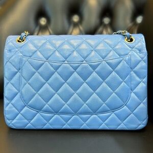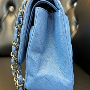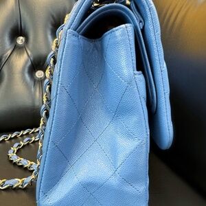 Chanel 21P Blue Caviar Quilted Jumbo Large Classic Double Flap bag & tag
