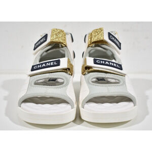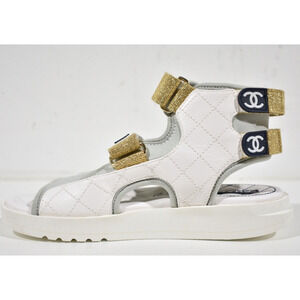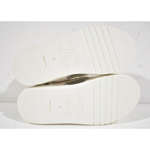 Chanel 21P White Grey Cocomark CC Logo Mule Slide Flat Teva Dad Sport Sandal 36