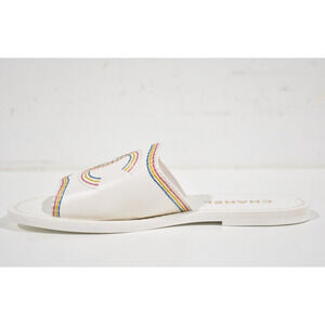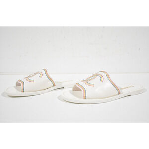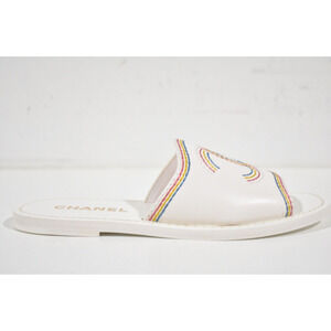 Chanel 21P White Multicolor Lambskin Leather CC Logo Slide Sandal Mule Flat 36