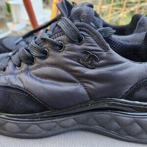 Chanel 21S G38035 black leather &nylon sneakers 24.5sm insole (See Notes)