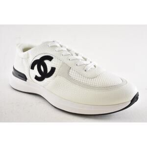 Chanel 21S Mens White Black Leather CC Logo Lace Low Top Trainer Sneaker 44 11