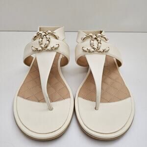 Chanel 21S White Leather Chain CC Sandals EU 37.5 / US 7.5