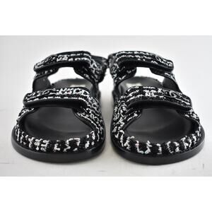 Chanel 22C Black White Tweed CC Logo Mule Slide Strap Flat Dad Teva Sandal 41