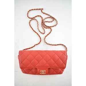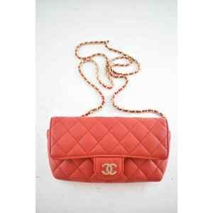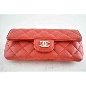 Size: Mini (7.2 x 3.5 x 2) Name: Glasses case on Chain Color: Red Style: Crossbody Bag Style #: AP2044 Y33352 NC028 Collection: 22C Material: Grained Calfskin Leather CC front logo Light gold metal hardware Quilted pattern Red caviar grained calfskin leather material Flap magnetic around closure Single chain strap with 22.5 inch drop Sunglasses / glasses case holder with chain SOLD OUT WORLDWIDE, SUPER RARE BAG 100% Authentic or your money back Brand new with tags, authenticity card, dust bag and box, full set