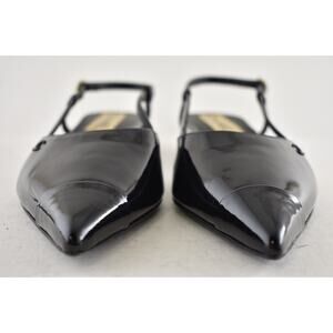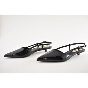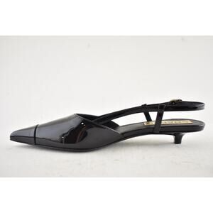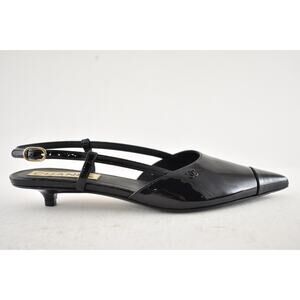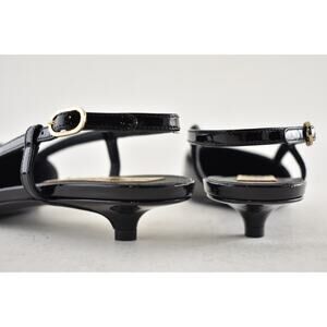 Chanel 22K Black Patent Leather CC Sling Slingback Sandal Pointed Kitten Heel 37