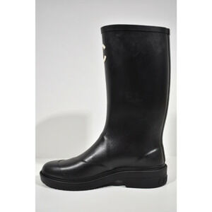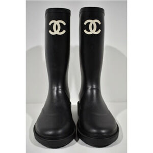 Chanel 22K Black White Caoutchouc CC Logo High Pull On Rubber Rain Boots 42