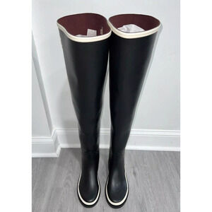 Chanel 22K Black White Caoutchouc CC Logo Thigh High Pull On Rubber Rain Boot 38