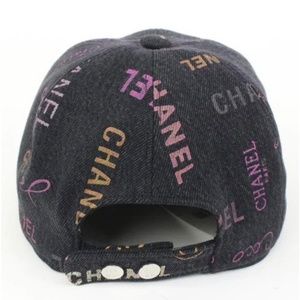 Chanel 22P Black Denim x Pink CC Logo All Over Baseball Cap