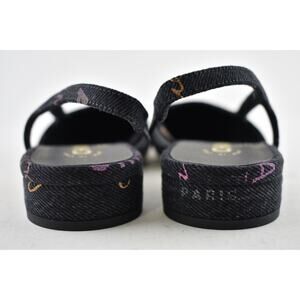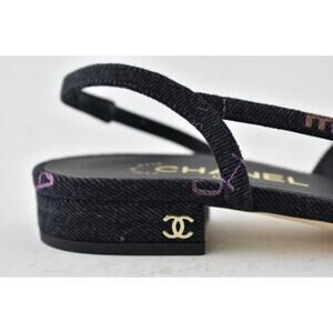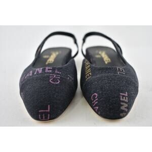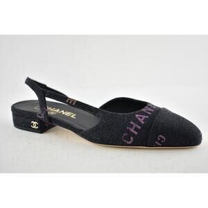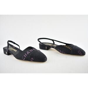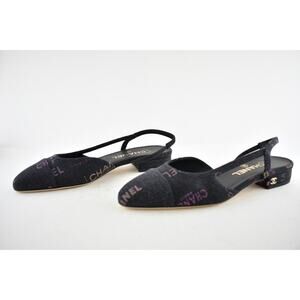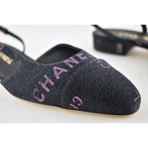 Chanel 22P Mademoiselle Coco Sling Black Grey Denim Slingback Ballet Flat 36