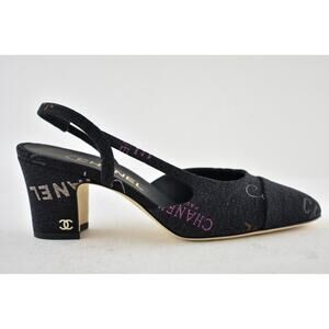 Chanel 22P Mademoiselle Coco Sling Black Grey Denim Slingback Sandal Heel 36.5