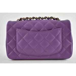 Chanel 22P Purple Gold Chain Mini Flap Rectangle CC Logo Quilted Crossbody Bag