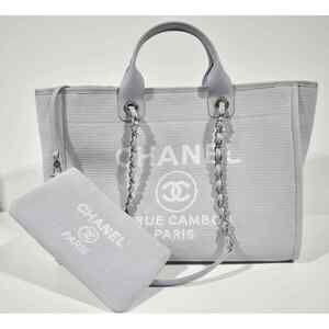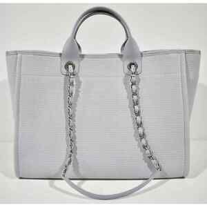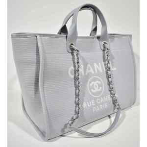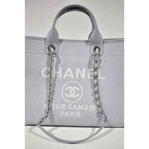 Chanel 22S Deauville Grey Large Shopping 30cm 2Way Silver Chain Handle Tote Bag