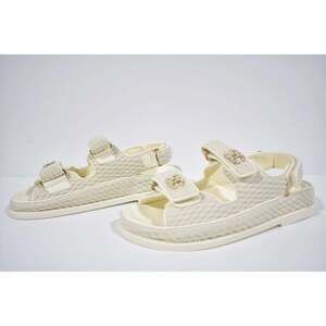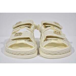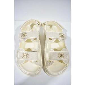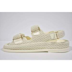 Chanel 22S Ivory Off White Knit CC Logo Mule Slide Strap Flat Dad Teva Sandal 37.5